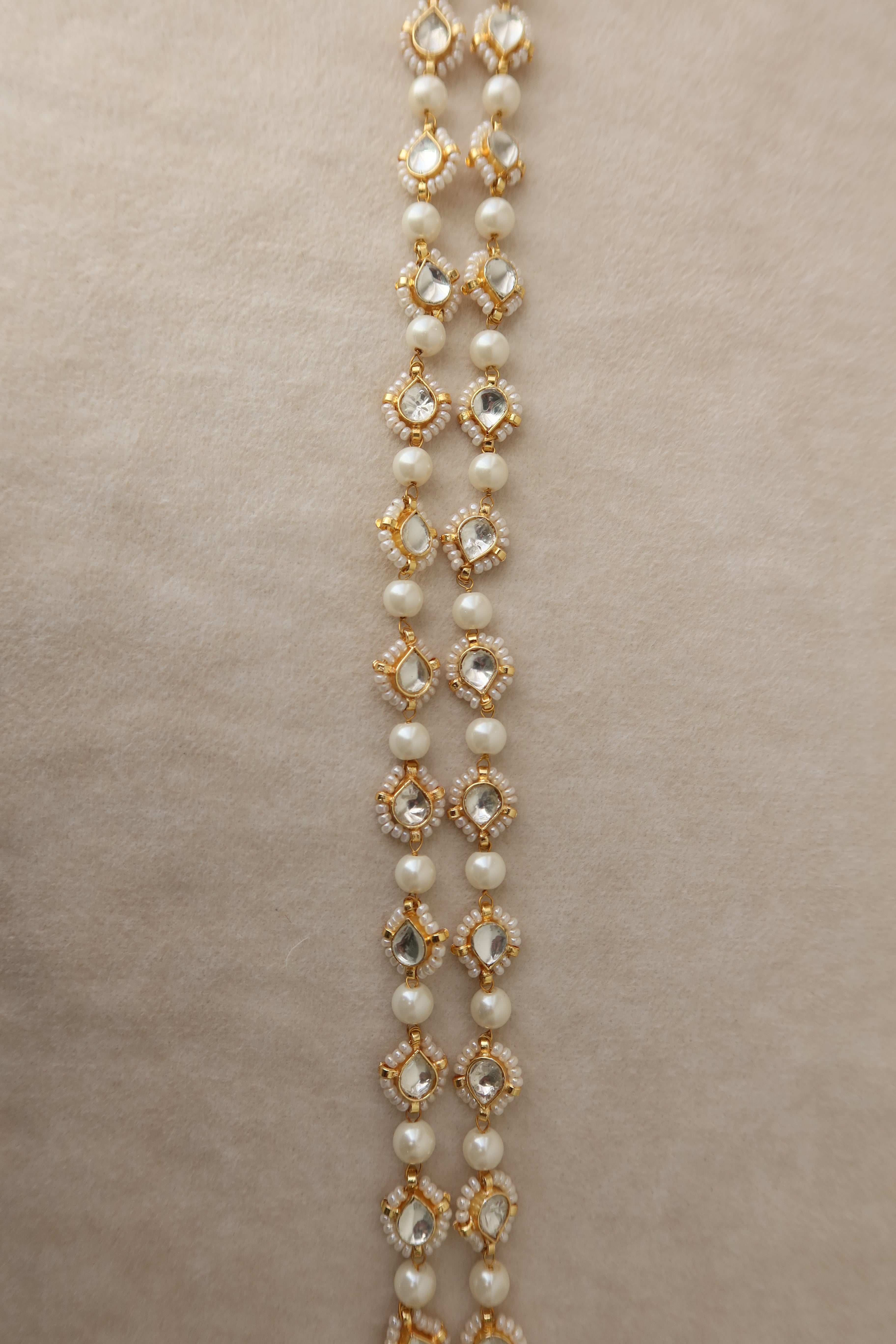 • Design: Repeating teardrop Kundan motifs with a pearl-beaded border.