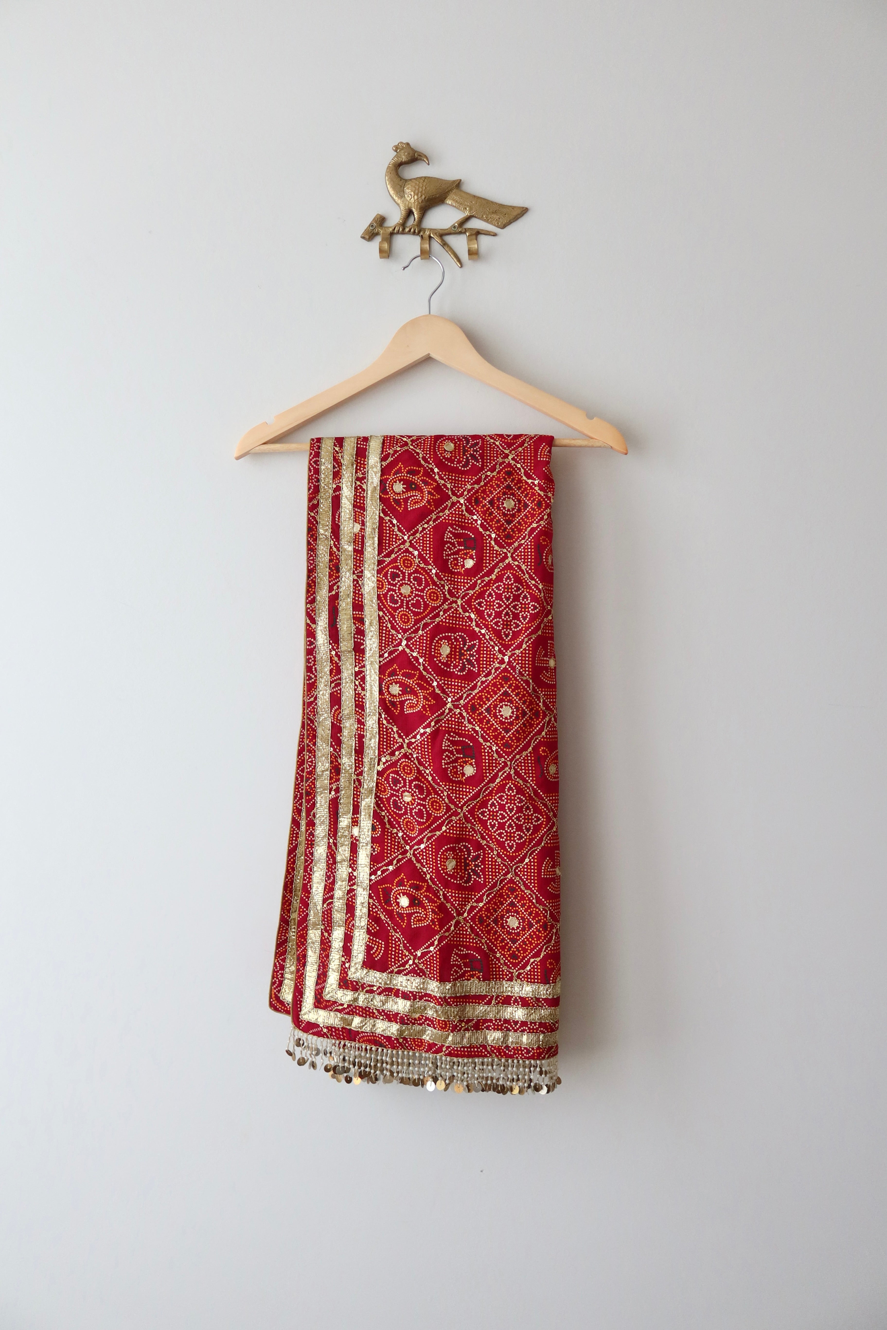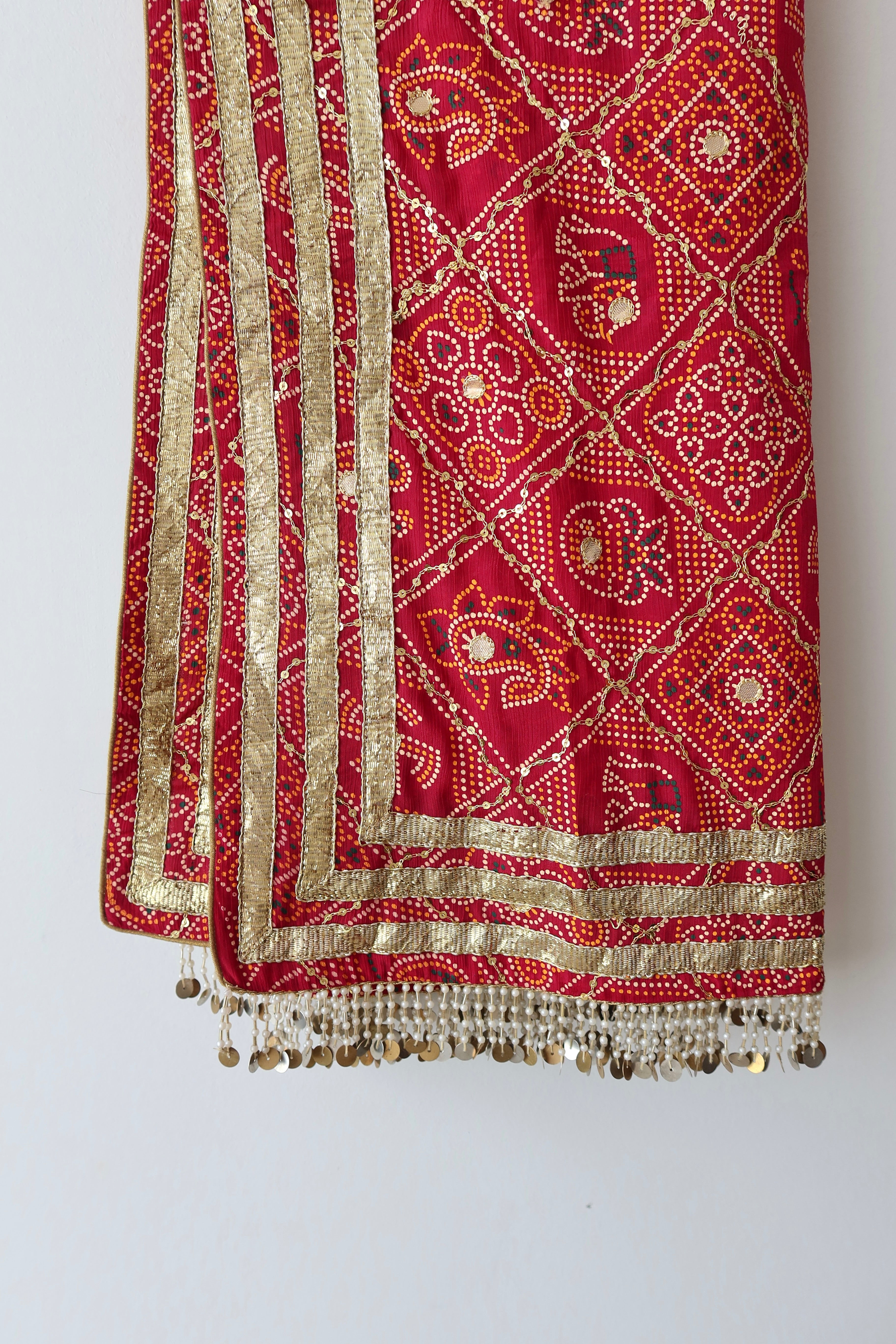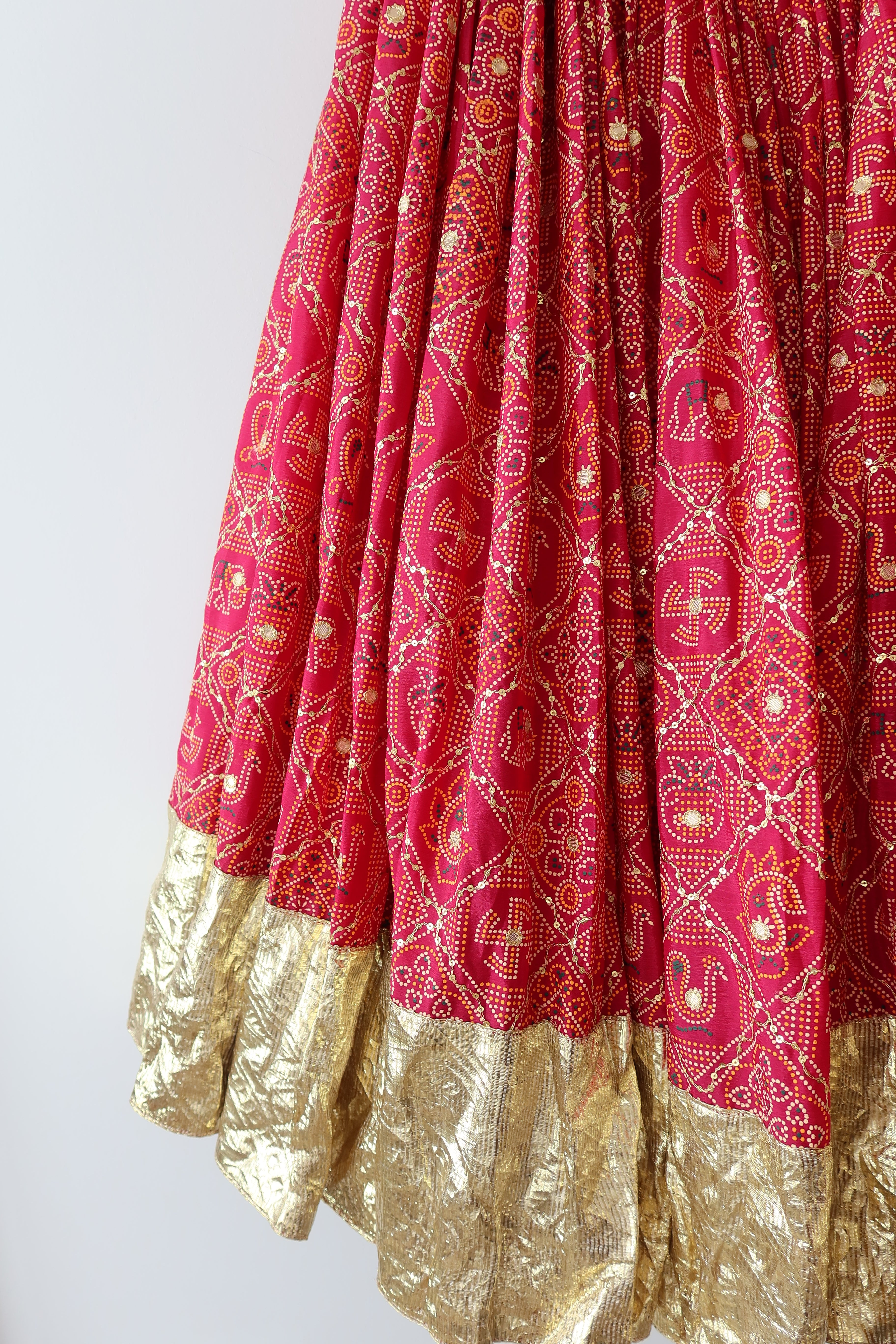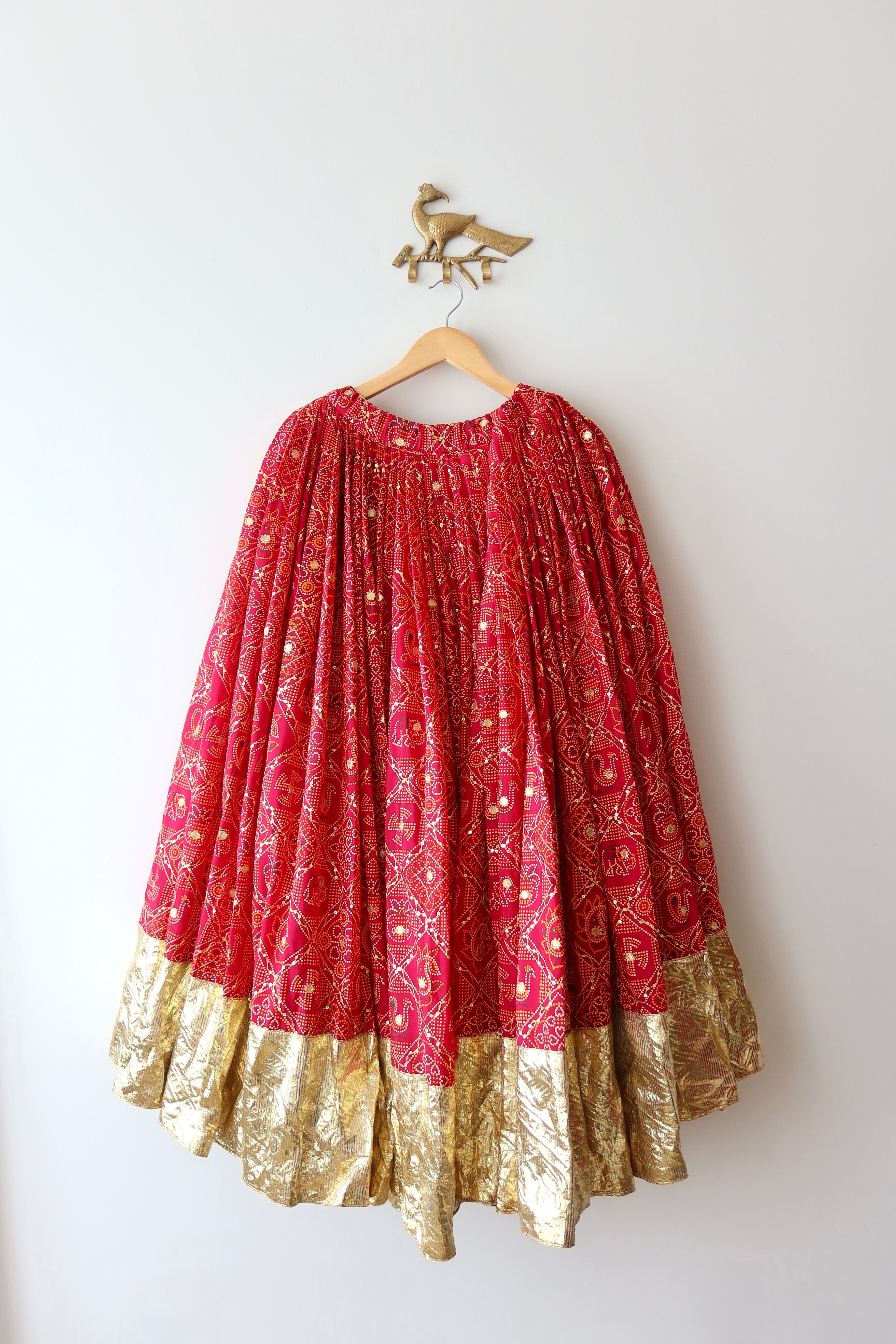 Red and Gold Bandhani Lehenga Choli - New, M/L