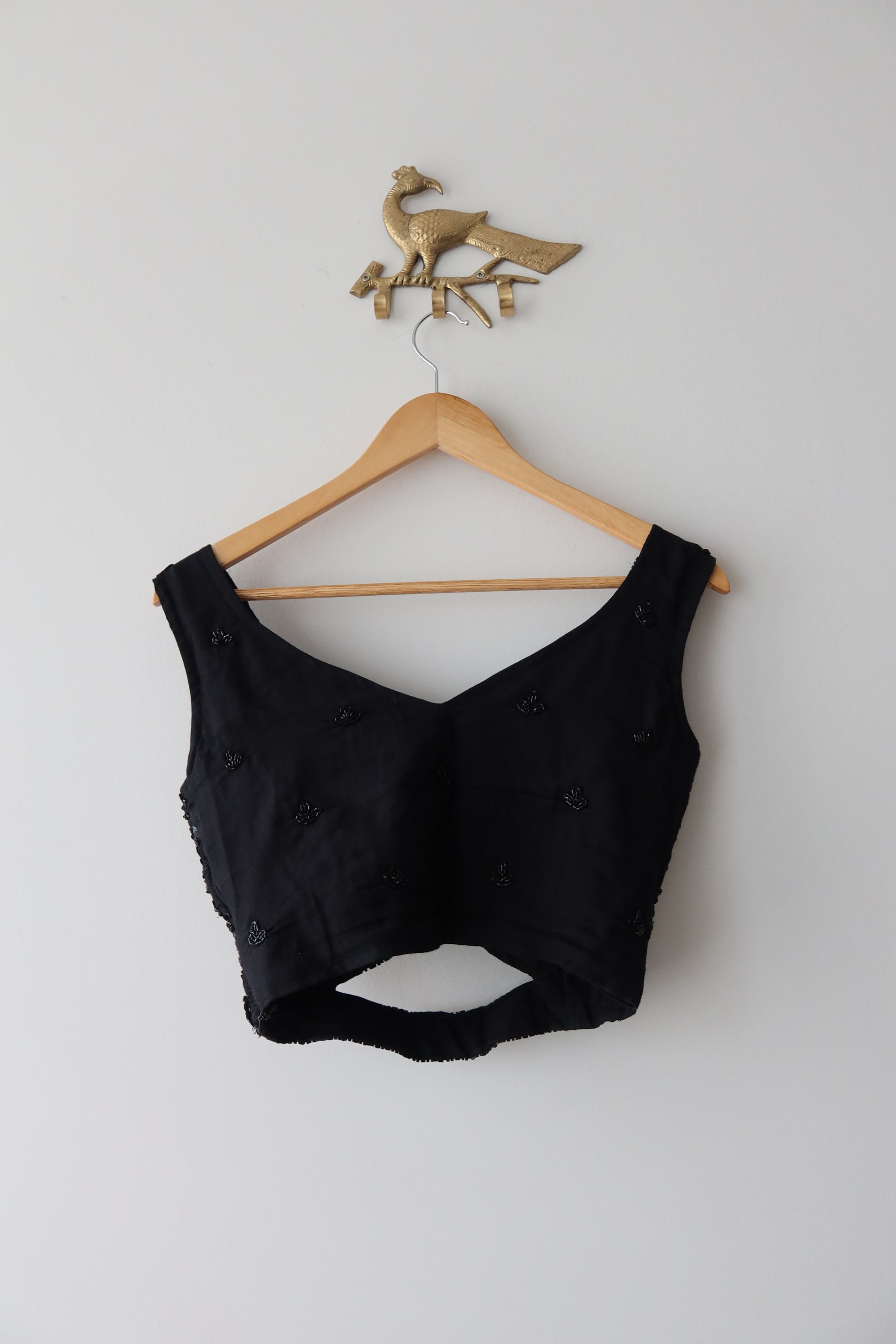 Size: Blouse 34 inch bust (with margin) | Skirt waist 26–30 inches (elastic + drawstring) | Skirt length 41 inches Condition: Preloved – Excellent (worn once, professionally dry-cleaned, no missing work or flaws) Occasion: Reception, cocktail party, sangeet, engagement, black-tie wedding, modern bride, evening events
