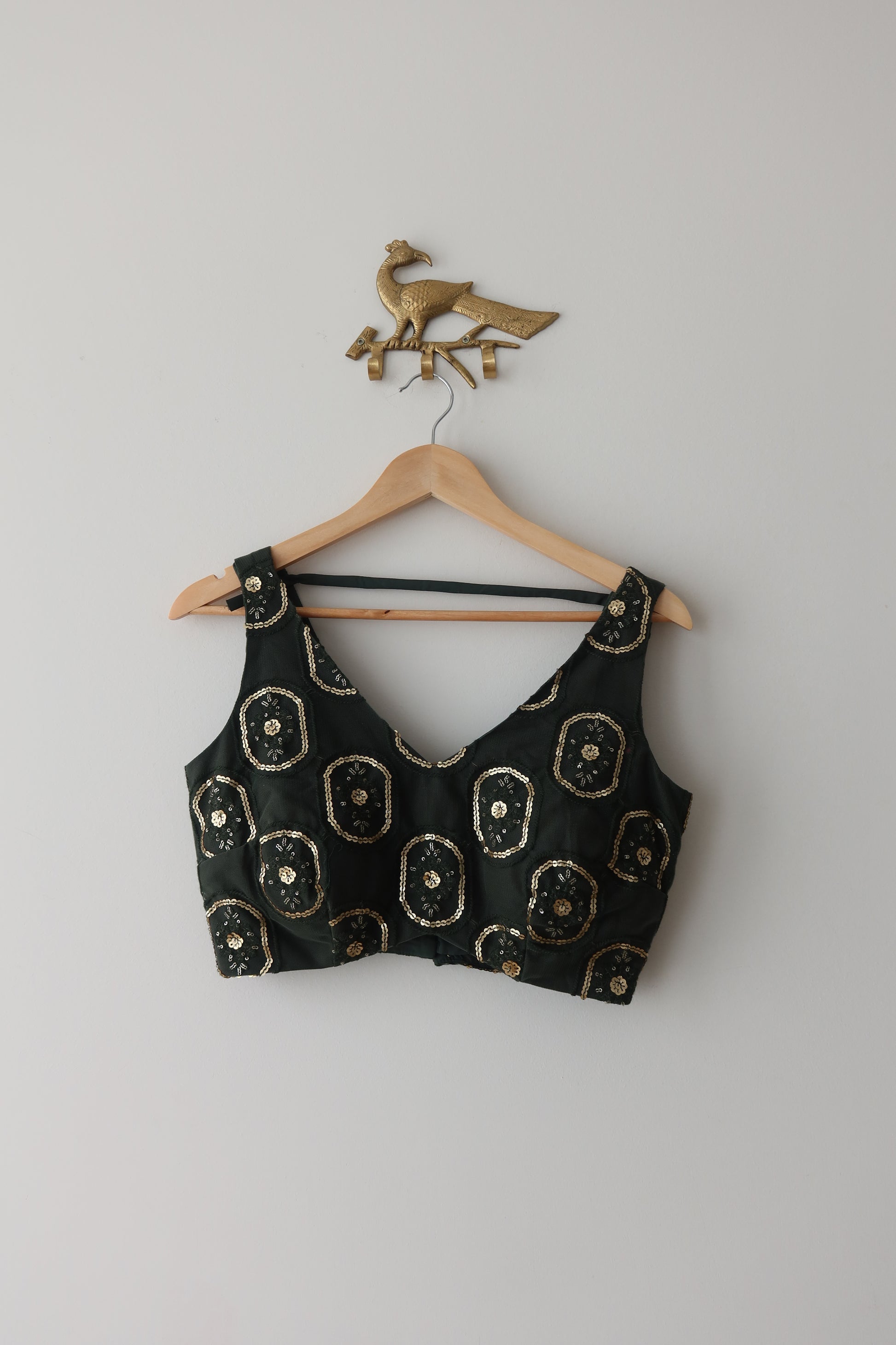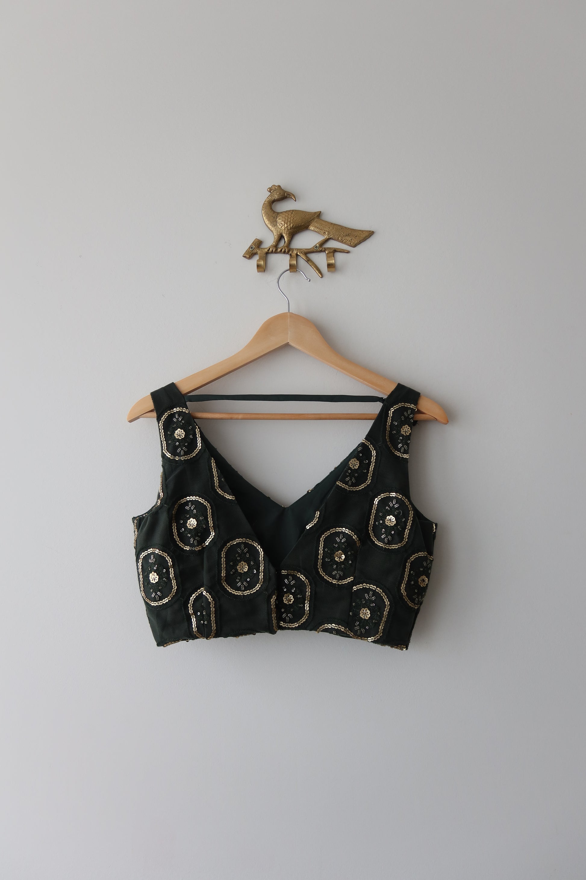 Color: Deep Bottle Green / Midnight Teal with antique gold work