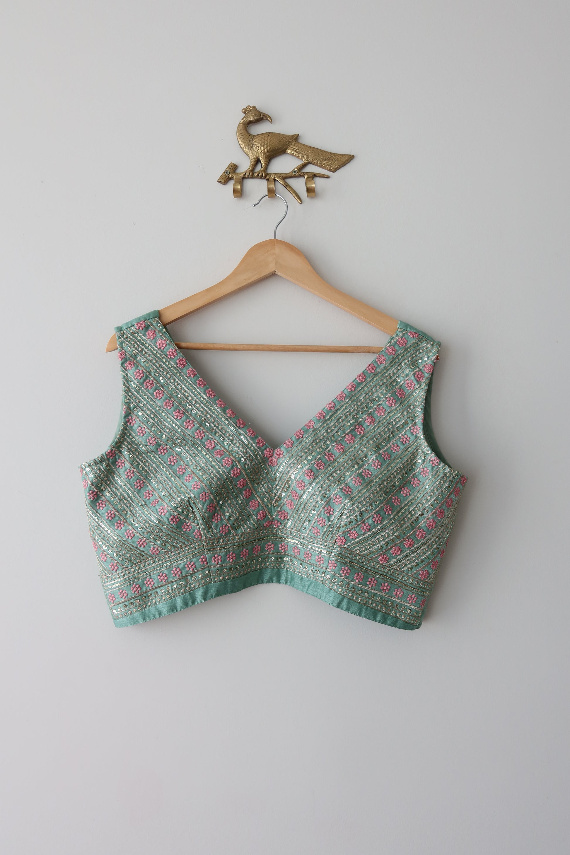 Size: 44 bust (with margin for slight alteration) Condition: Preloved – Excellent (no stains, pulls, or damage) Occasion: Wedding guest, engagement, reception, sangeet, mehendi, summer wedding, day events, plus-size ethnic wear